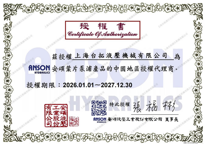 中國臺灣安頌ANSON授權(quán)代理證書