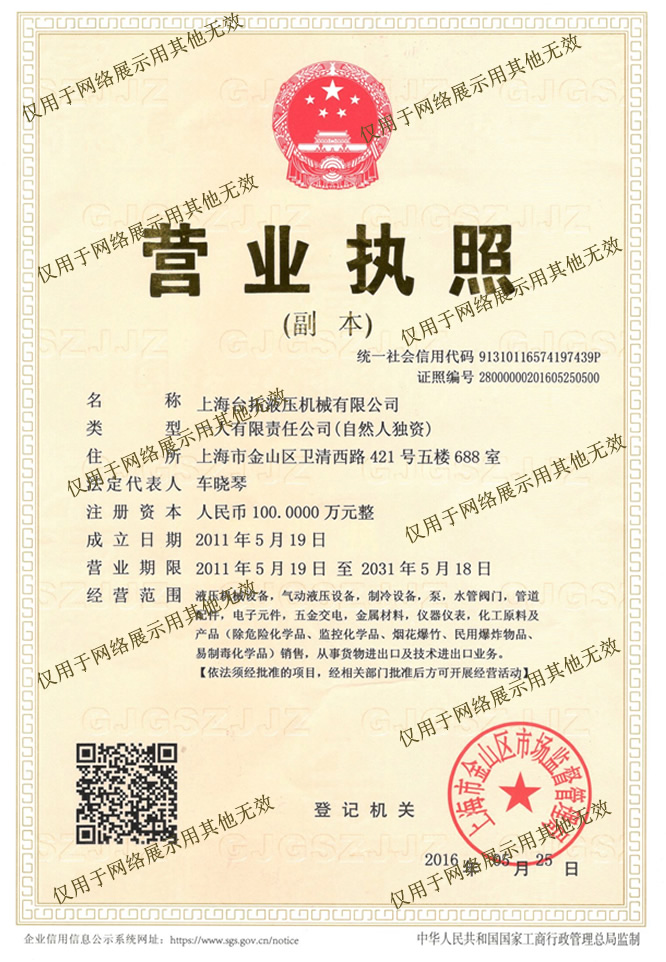 上海臺(tái)拓液壓機(jī)械有限公司營(yíng)業(yè)執(zhí)照:
