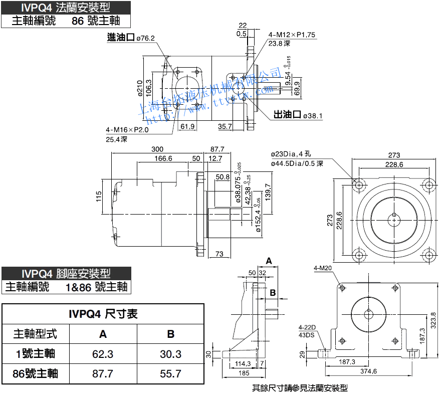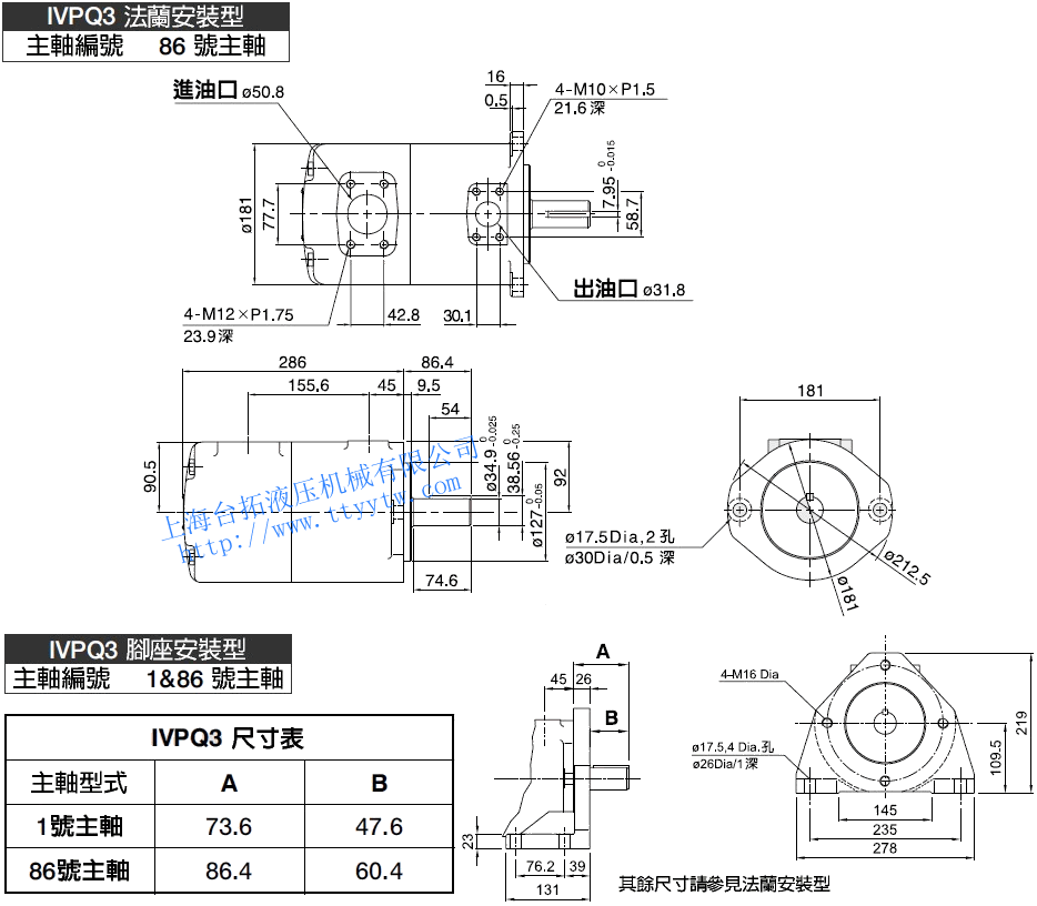 子母葉片定量泵IVPQ4(86號平鍵主軸/1&86號主軸)尺寸圖下載