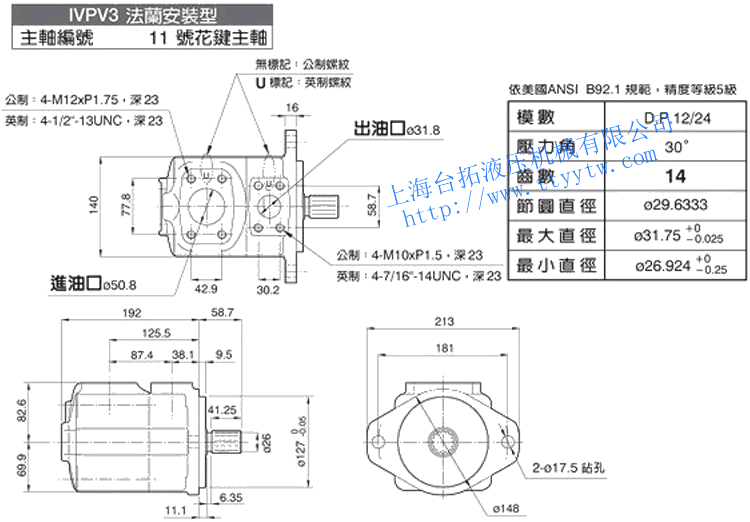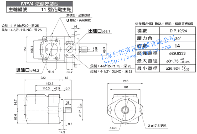 子母葉片定量泵IVPV4(11號(hào)花鍵主軸)尺寸圖下載