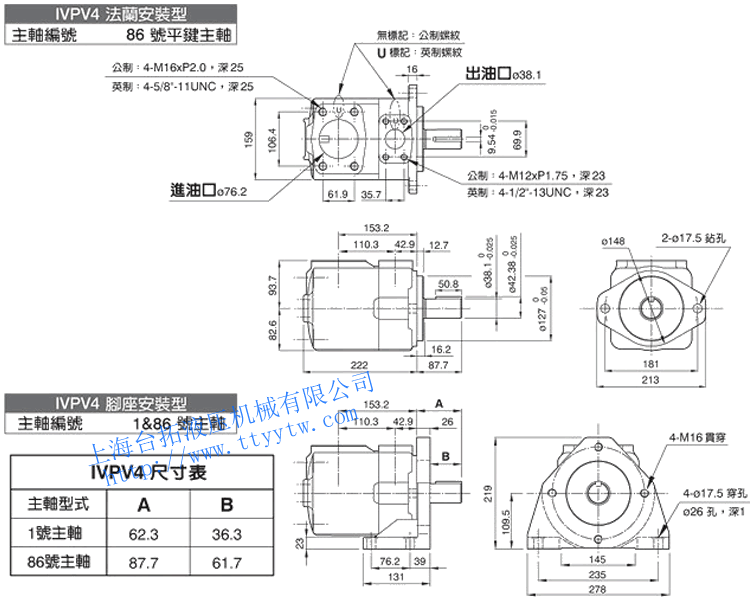 子母葉片定量泵IVPV系列尺寸圖