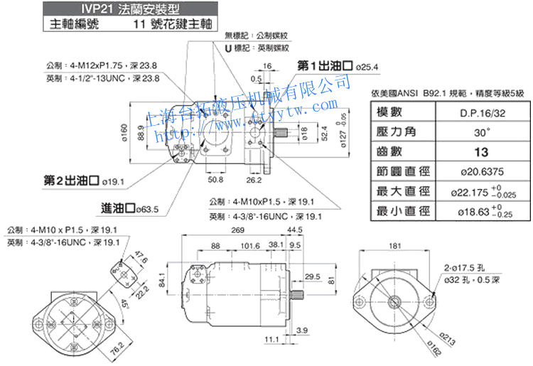 雙聯(lián)子母葉片定量泵IVP21(11號花鍵主軸)尺寸圖下載 雙聯(lián)子母葉片定量泵IVP31(1號平鍵主軸)尺寸圖下載