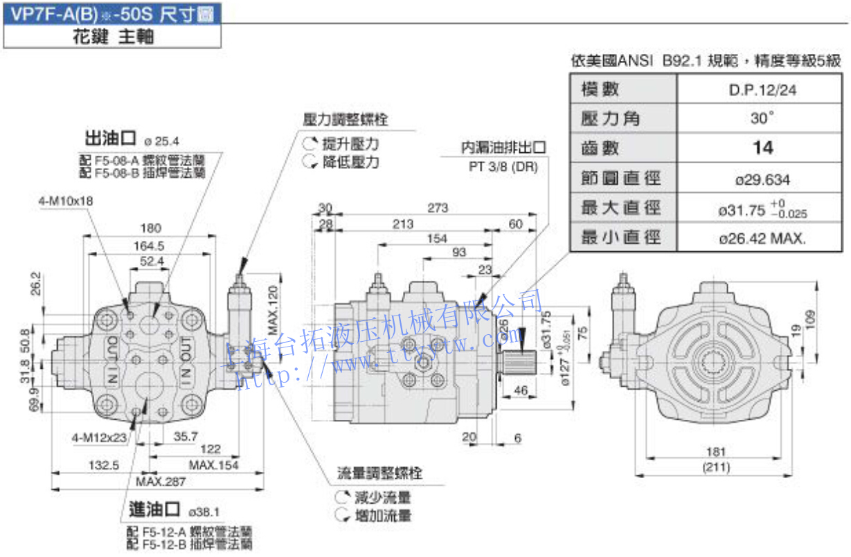 可變吐出量葉片泵VP7F-A*-50尺寸圖下載 可變吐出量葉片泵VP7F-A*-50S尺寸圖下載