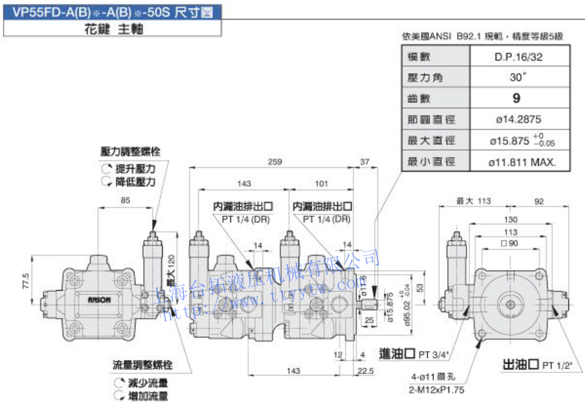 可變吐出量葉片泵VP55FD-A(B)*-A(B)*-50尺寸圖下載 可變吐出量葉片泵VP55FD-A(B)*-A(B)*-50S尺寸圖下載